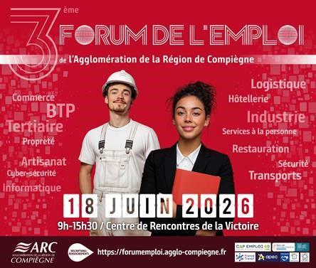 L'édition 2026 se déroulera le 18 juin 2026. Vous pouvez d'ores et déjà vous connecter sur la page https://forumemploi.agglo-compiegne.fr